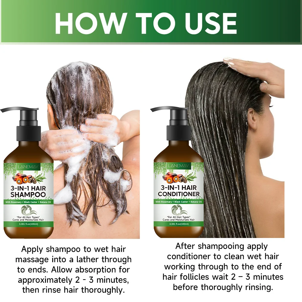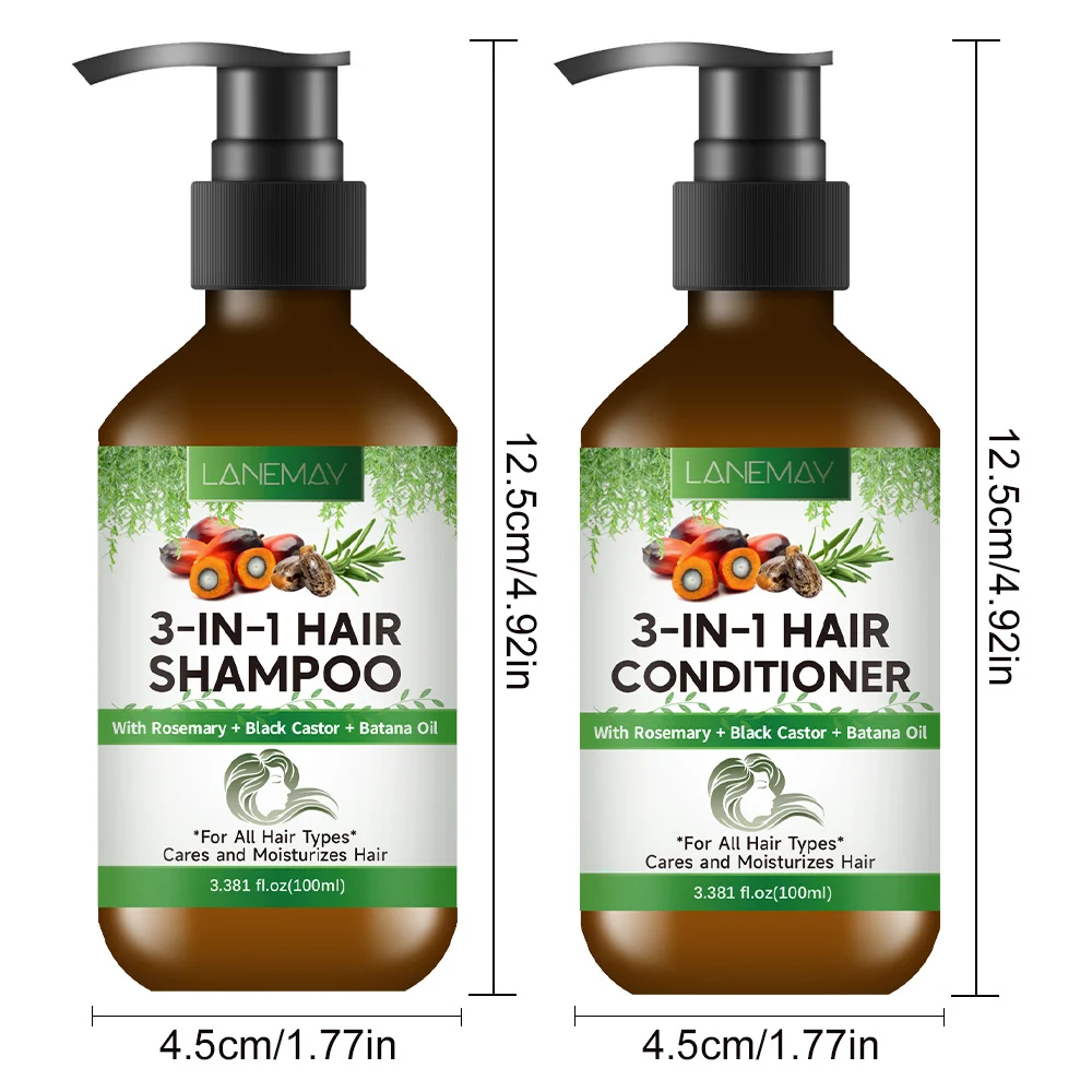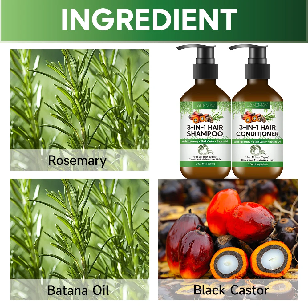 Experience the ultimate hair transformation with the LANEMAY 3-in-1 Hair Care Solution. This powerhouse formula combines the cleansing properties of a shampoo with the nourishing benefits of a conditioner and treatment. Designed for modern lifestyles, it simplifies your routine while delivering salon-quality results. Infused with a potent trio of natural oils—Rosemary, Black Castor, and Batana—it penetrates deep into the hair follicles to strengthen strands, reduce split ends, and leave your hair feeling silky, hydrated, and revitalized.