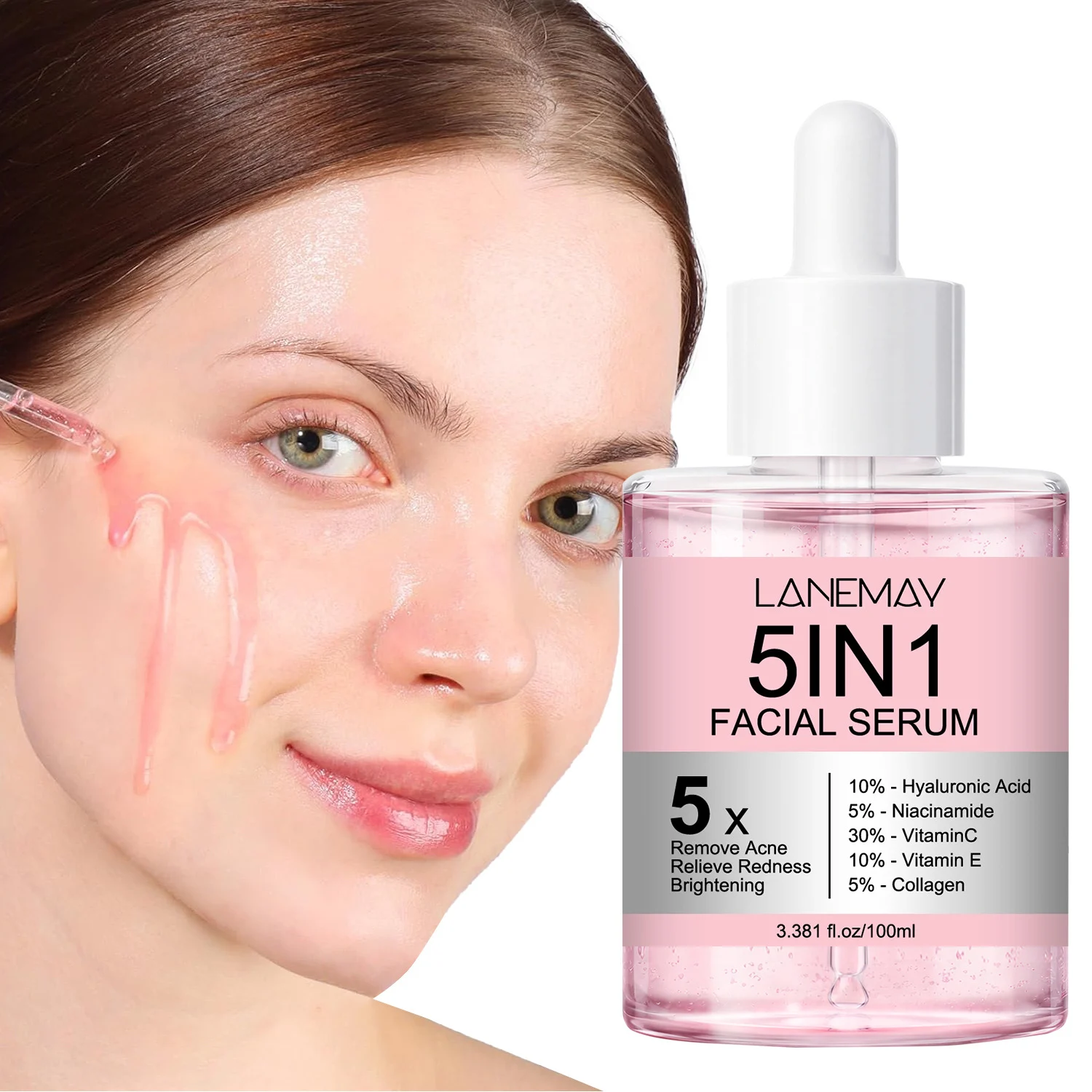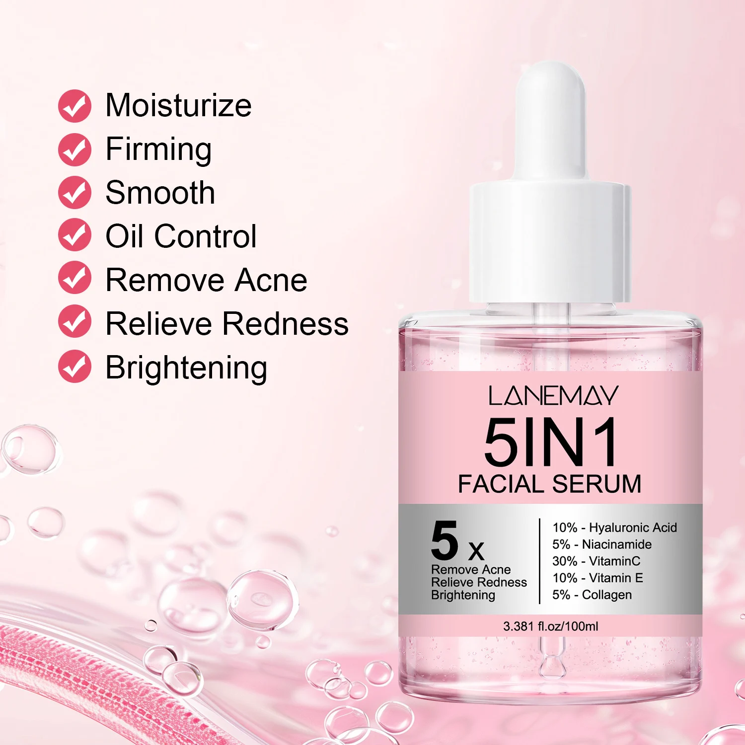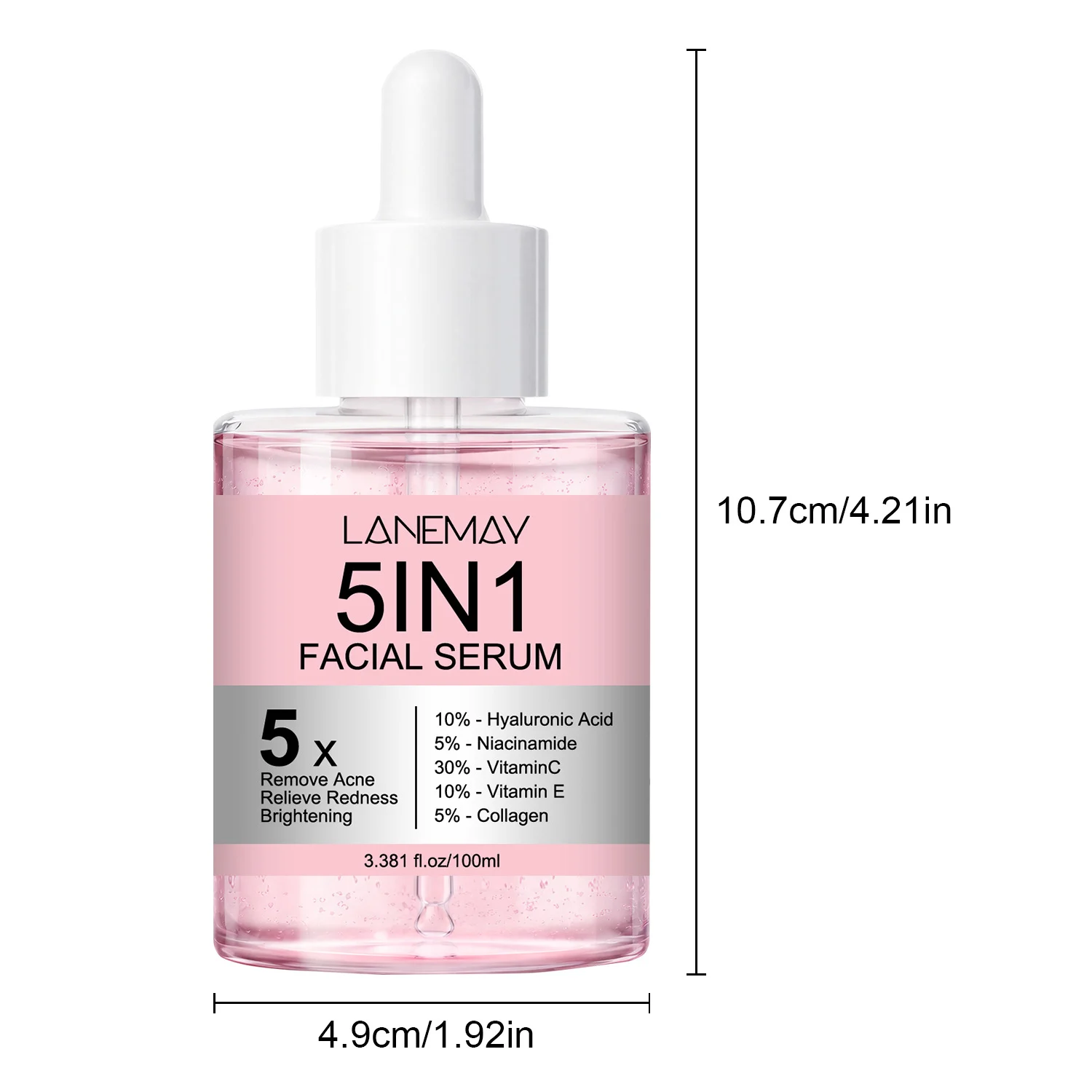 Unlock the secret to a flawless complexion with the LANEMAY 5 in 1 Facial Serum. This powerhouse formula is designed to simplify your skincare routine by combining five critical treatments into one potent bottle. Whether you are battling dullness, acne marks, fine lines, or dehydration, this high-concentration serum delivers visible results. With a massive 100ml capacity, it ensures long-term care for firmer, smoother, and brighter skin. It is the ultimate solution for achieving a hydration balance and restoring your skin’s natural glow.