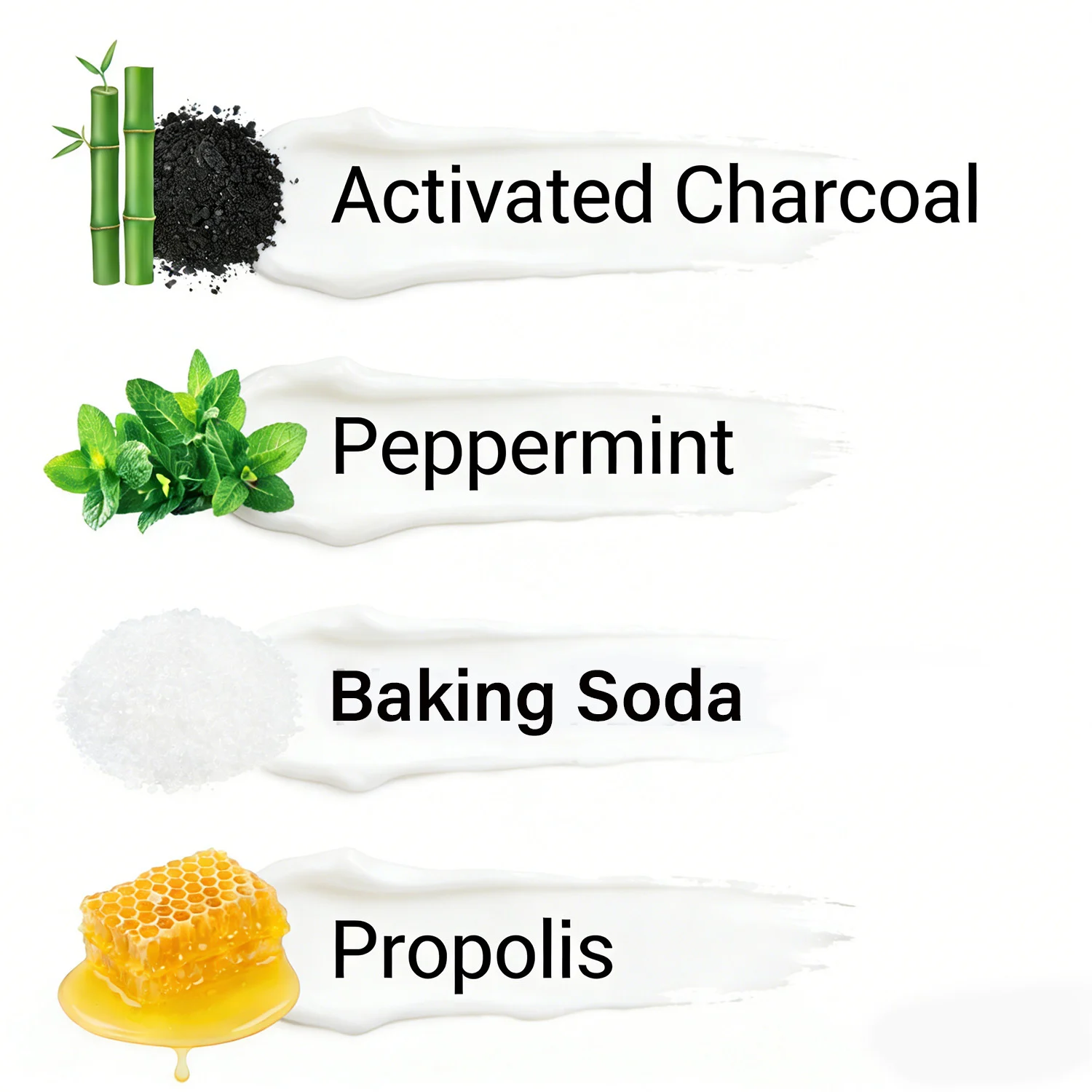 - Activated Charcoal: Acts like a magnet to pull out toxins and stains for natural whitening.