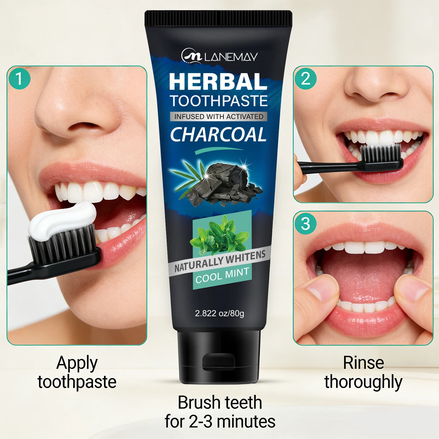Experience the ultimate detox for your smile with LANEMAY Activated Charcoal Whitening Toothpaste. This herbal-infused formula combines the power of nature with advanced oral care technology to lift deep-set stains, neutralize odors, and protect your enamel, leaving you with a brighter, healthier smile and long-lasting minty freshness.