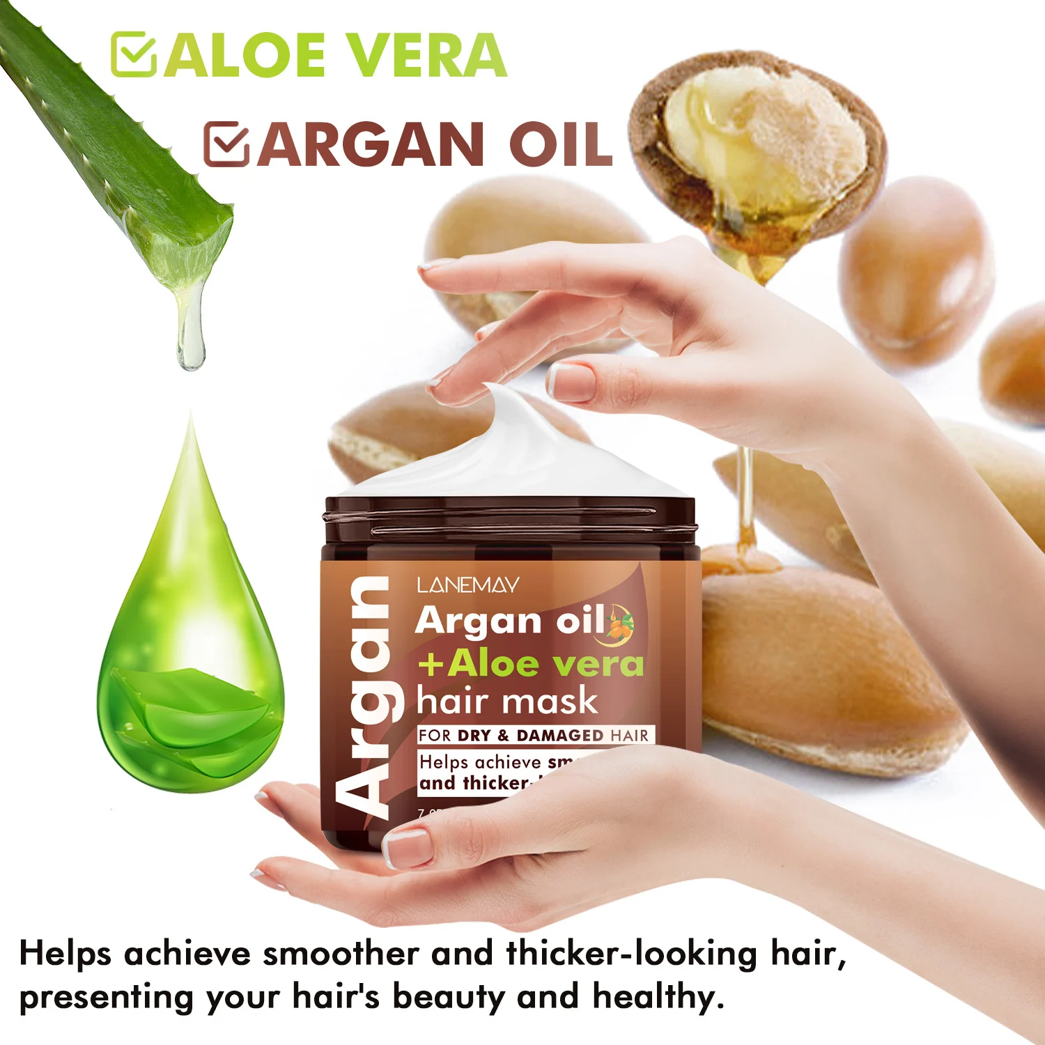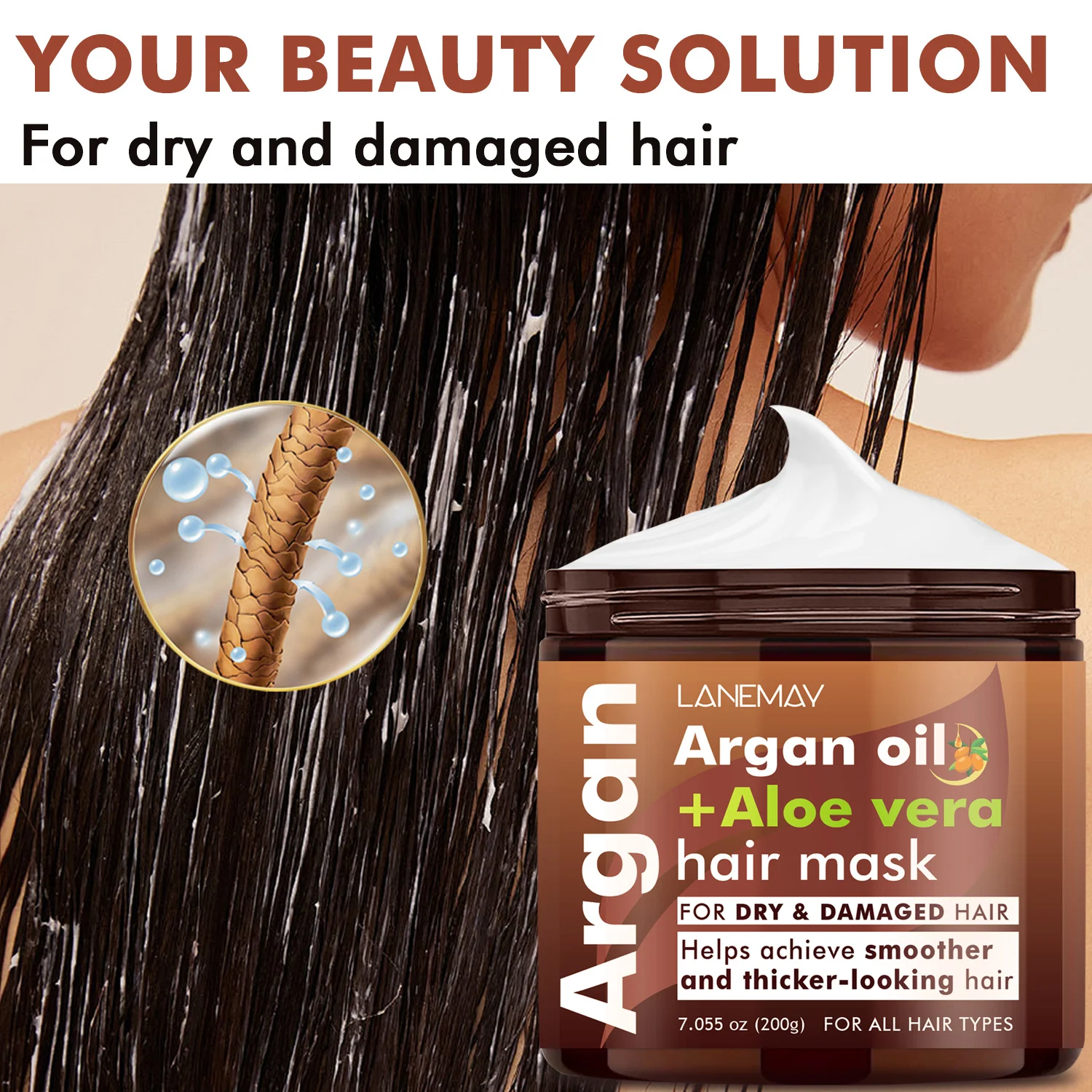 Experience the transformative power of the LANEMAY Argan Oil & Aloe Vera Hair Mask. Specially formulated for dry and damaged hair, this luxurious treatment penetrates deep into the hair shaft to restore moisture, elasticity, and shine. Whether your hair is stressed from heat styling, coloring, or environmental factors, this mask delivers intense moisturization where your hair needs it most.