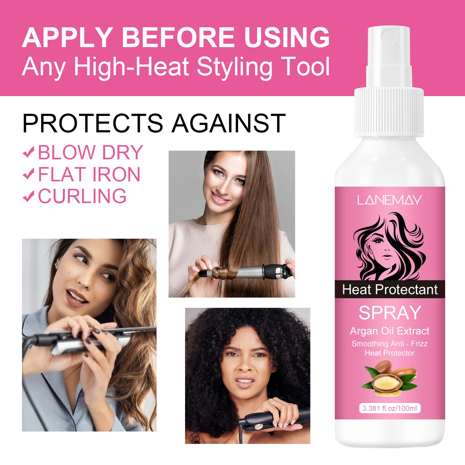 Unlock salon-quality protection and shine with the LANEMAY Argan Oil Heat Protectant Spray. Specifically formulated for hair experiencing dryness and frizz, this lightweight mist creates a thermal shield against high-heat styling tools like blow dryers, flat irons, and curling wands. Infused with pure Argan Oil, it doesn’t just protect—it transforms dull, unruly hair into a silky, manageable masterpiece.