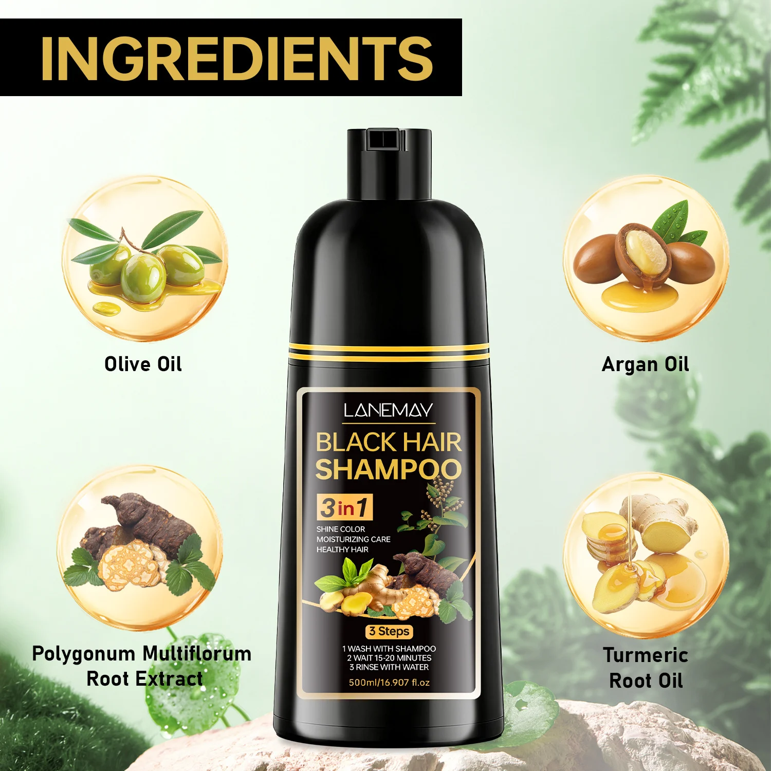 Restore your hair’s youthful vitality with the LANEMAY 3-in-1 Black Hair Shampoo. This innovative formula simplifies your hair care routine by combining cleansing, coloring, and deep conditioning into a single step. Perfect for busy individuals, it provides professional-level gray coverage and a brilliant shine from the comfort of your home.