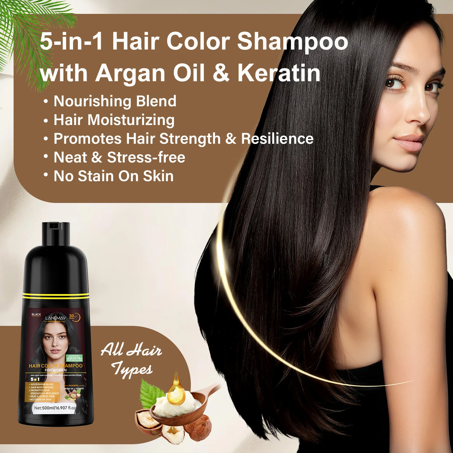 Black Hair Shampoo for Women LANEMAY 100% Gray Coverage with Keratin & Argan Oil 500ml