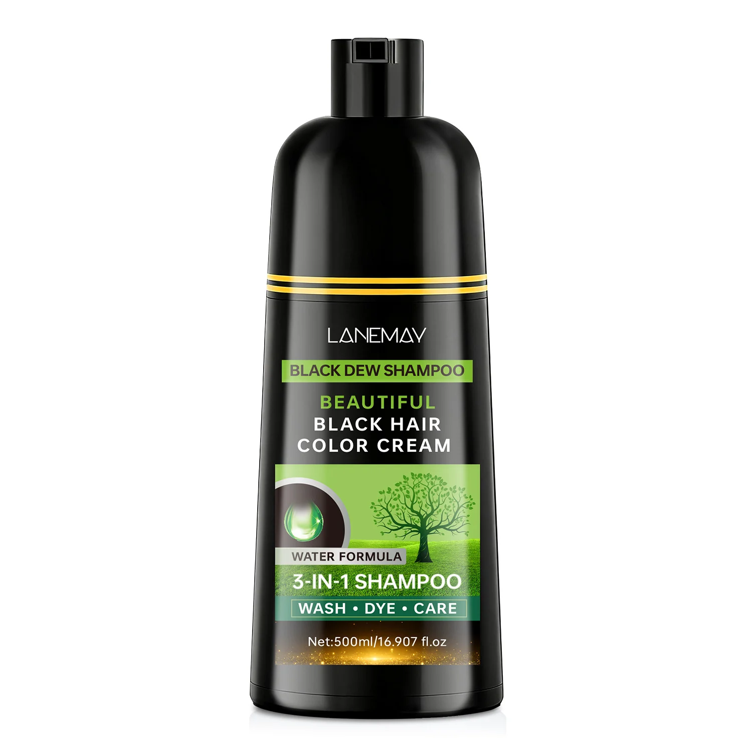 Black Hair Shampoo LANEMAY 3-in-1 Instant Gray Hair Coverage Wash Dye and Care 500ml