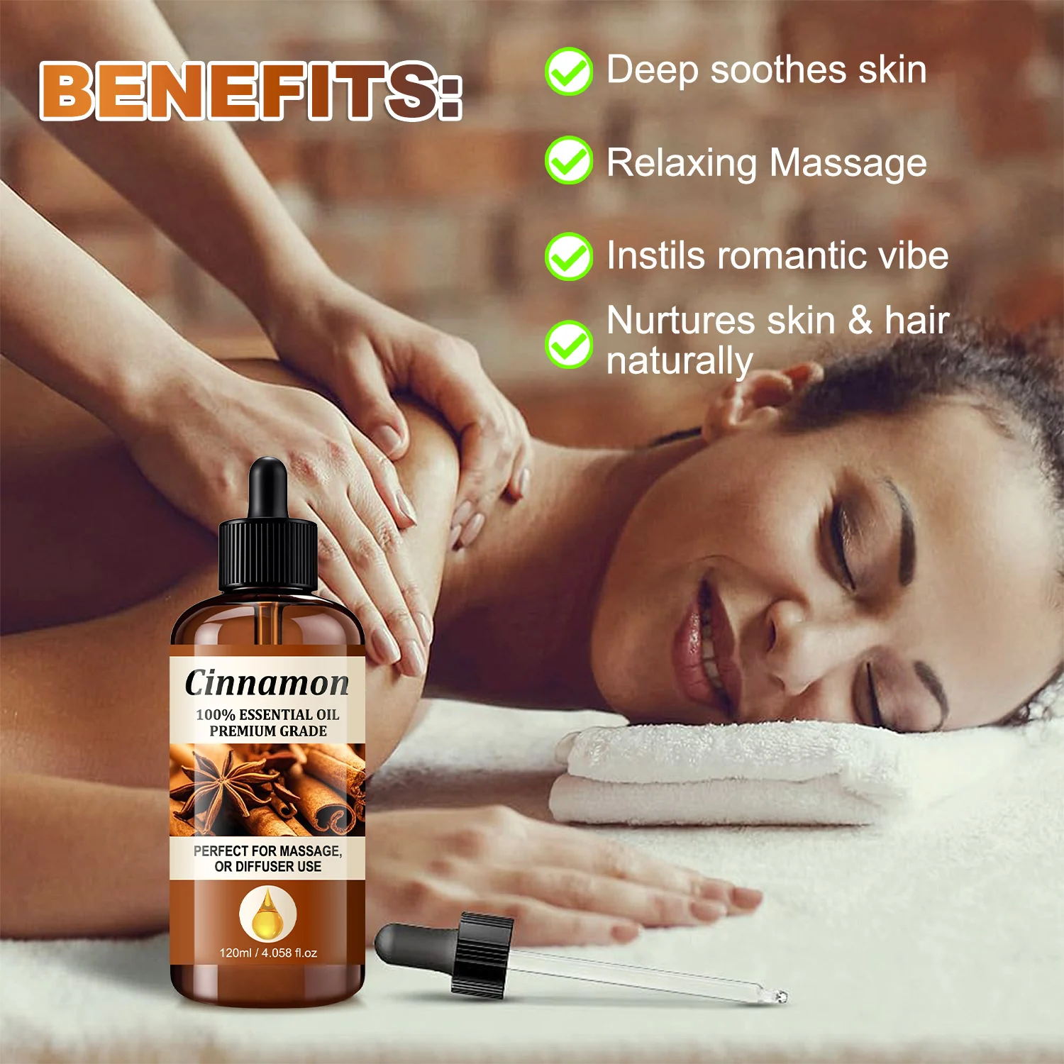 - Pure Cinnamon Oil (Cinnamomum Zeylanicum): Known for its warming properties, antioxidant benefits, and rich, spicy aroma.