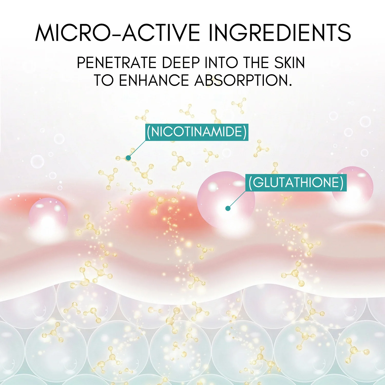 • Advanced Brightening: Combines Glutathione and 10% Niacinamide to reduce the appearance of dark spots and even out skin tone.