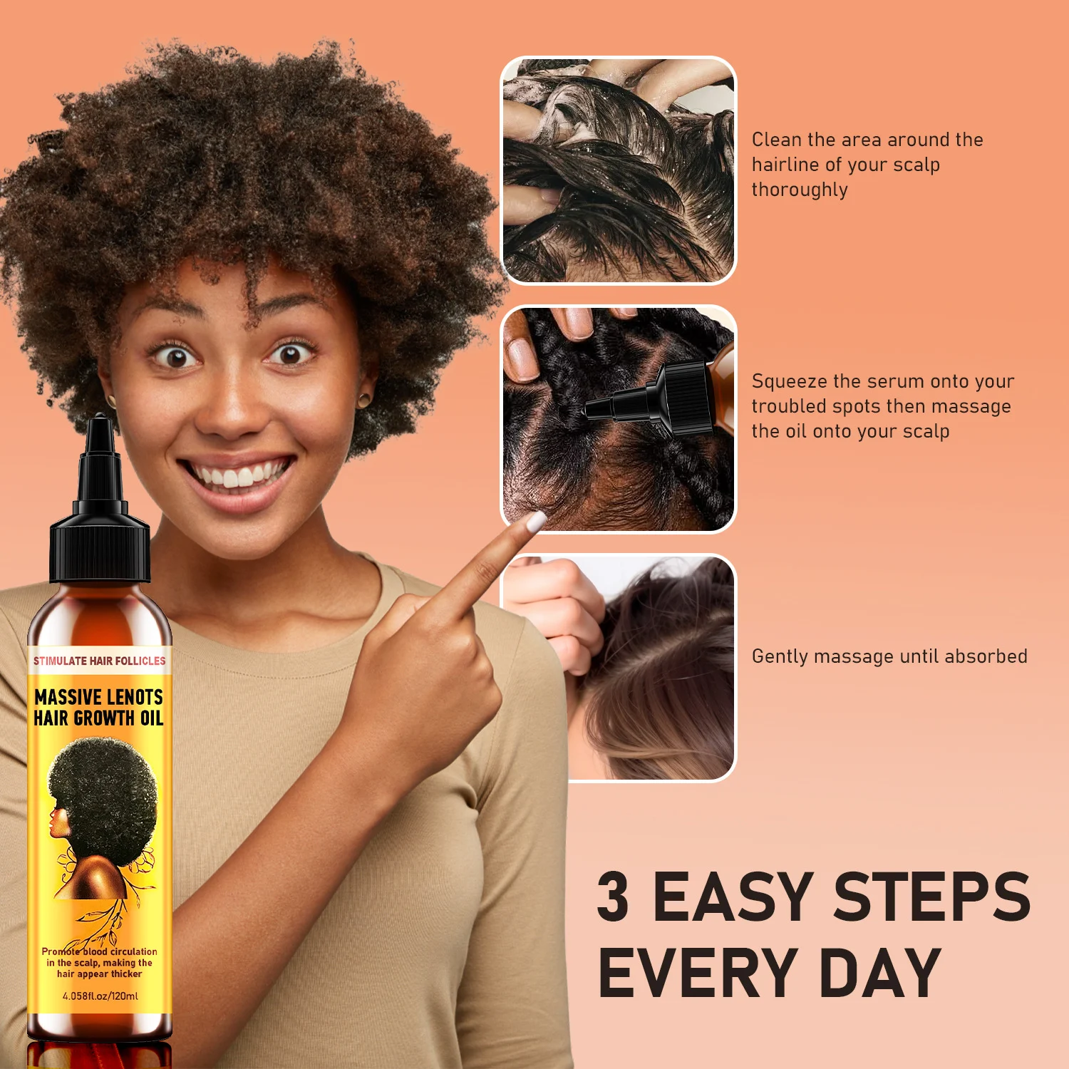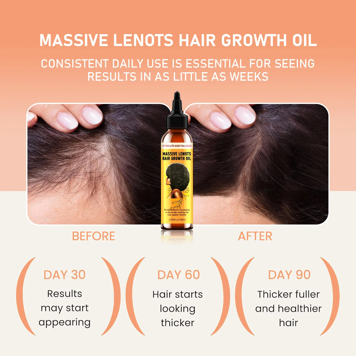 Experience the power of nature with MASSIVE LENOTS Hair Growth Oil, a potent 120ml formula designed to combat hair thinning and revitalize your scalp. Whether you are struggling with receding hairlines or simply want fuller, healthier strands, this expert blend targets the root of the problem. By stimulating blood circulation in the scalp and nourishing dormant follicles, it creates the perfect environment for rapid, robust hair growth.