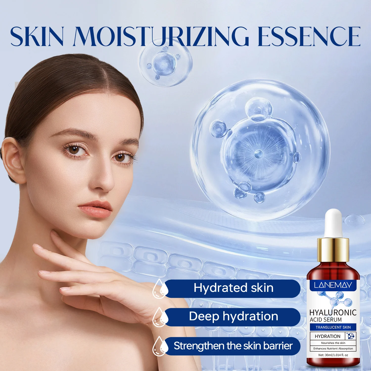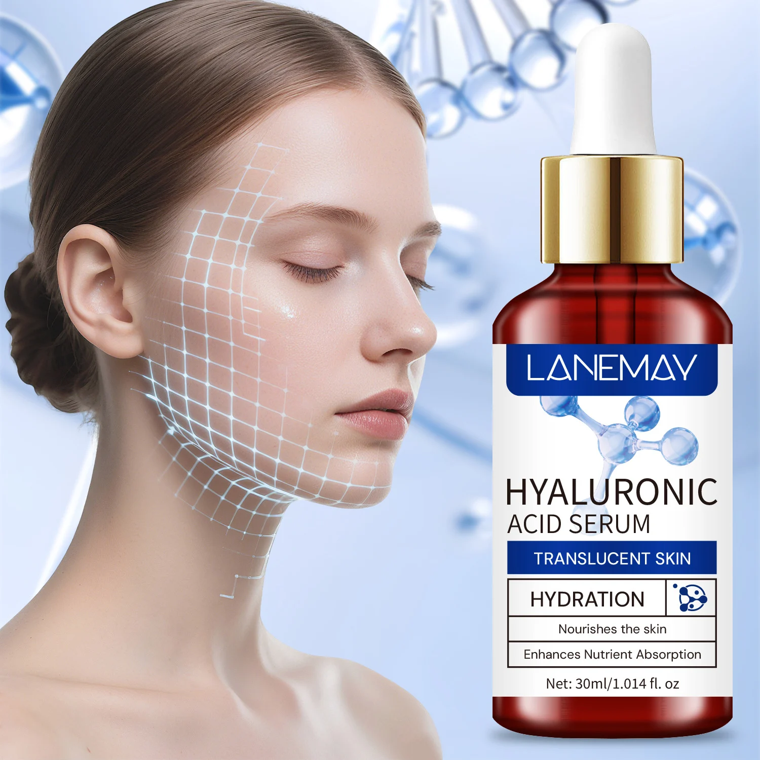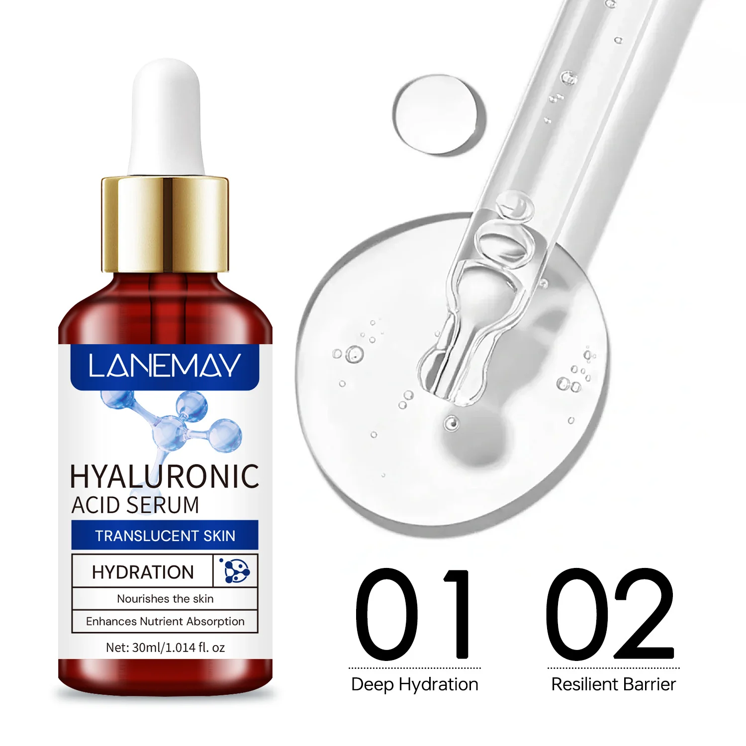 Experience the ultimate hydration boost with LANEMAY Hyaluronic Acid Serum. Designed to transform dull, dehydrated skin into a translucent, glowing complexion, this serum is backed by impressive results: 95% of users report deeply moisturized skin, while 91% feel their skin is more resilient. Its lightweight formula penetrates deep into the dermis to lock in moisture and restore your skin’s natural vitality.