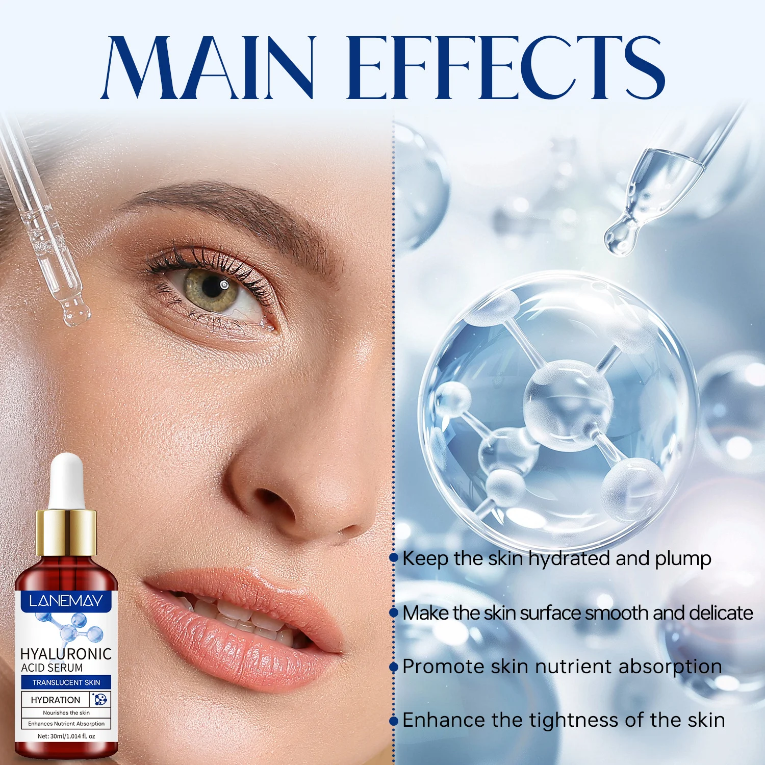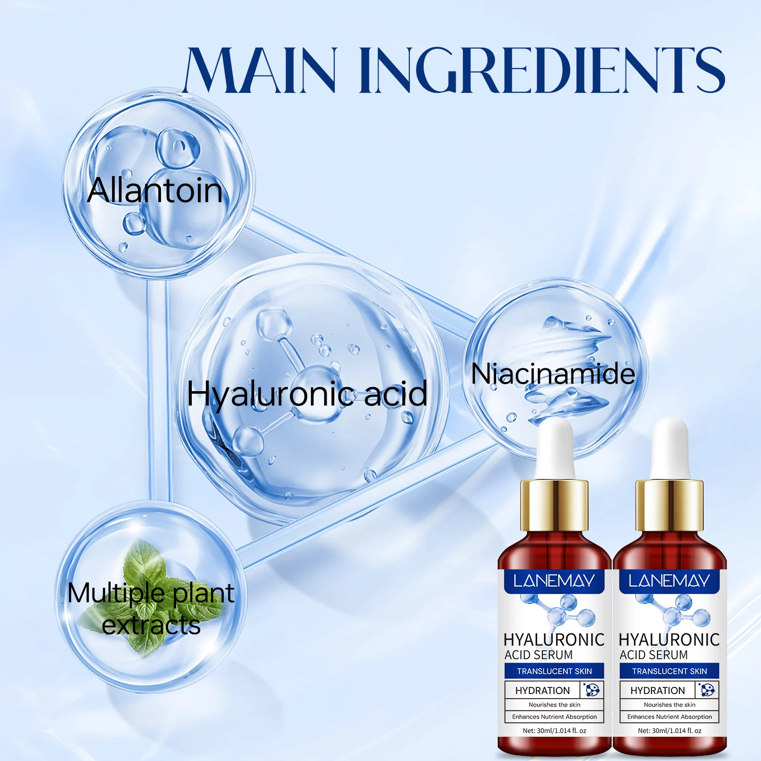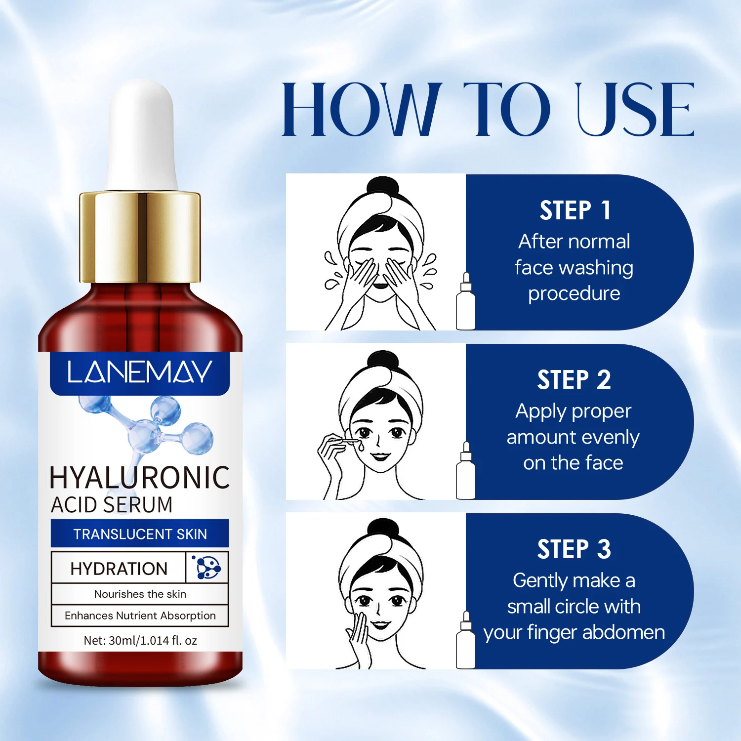 Experience the ultimate hydration boost with LANEMAY Hyaluronic Acid Serum. Designed to transform dull, dehydrated skin into a translucent, glowing complexion, this serum is backed by impressive results: 95% of users report deeply moisturized skin, while 91% feel their skin is more resilient. Its lightweight formula penetrates deep into the dermis to lock in moisture and restore your skin’s natural vitality.