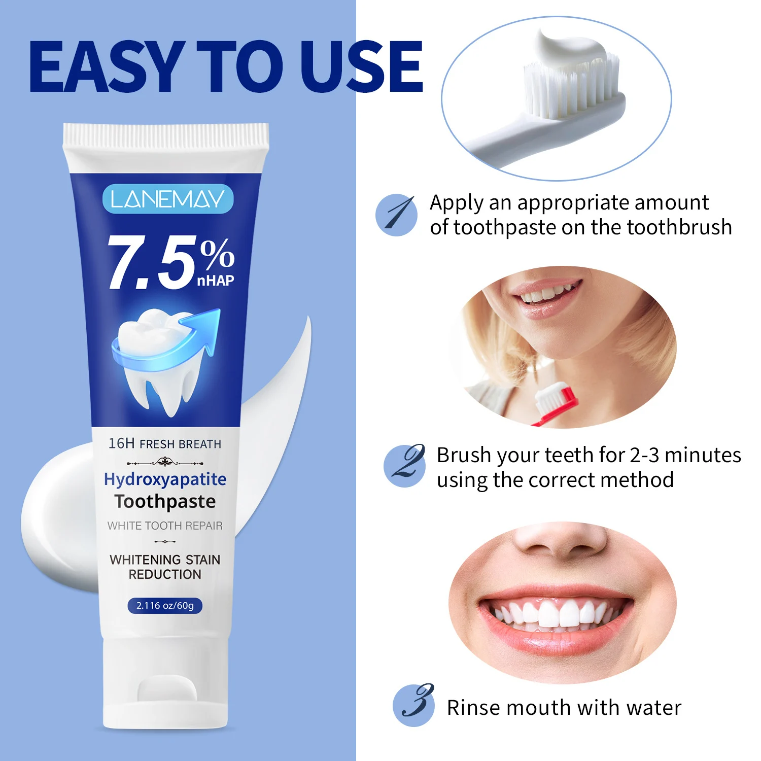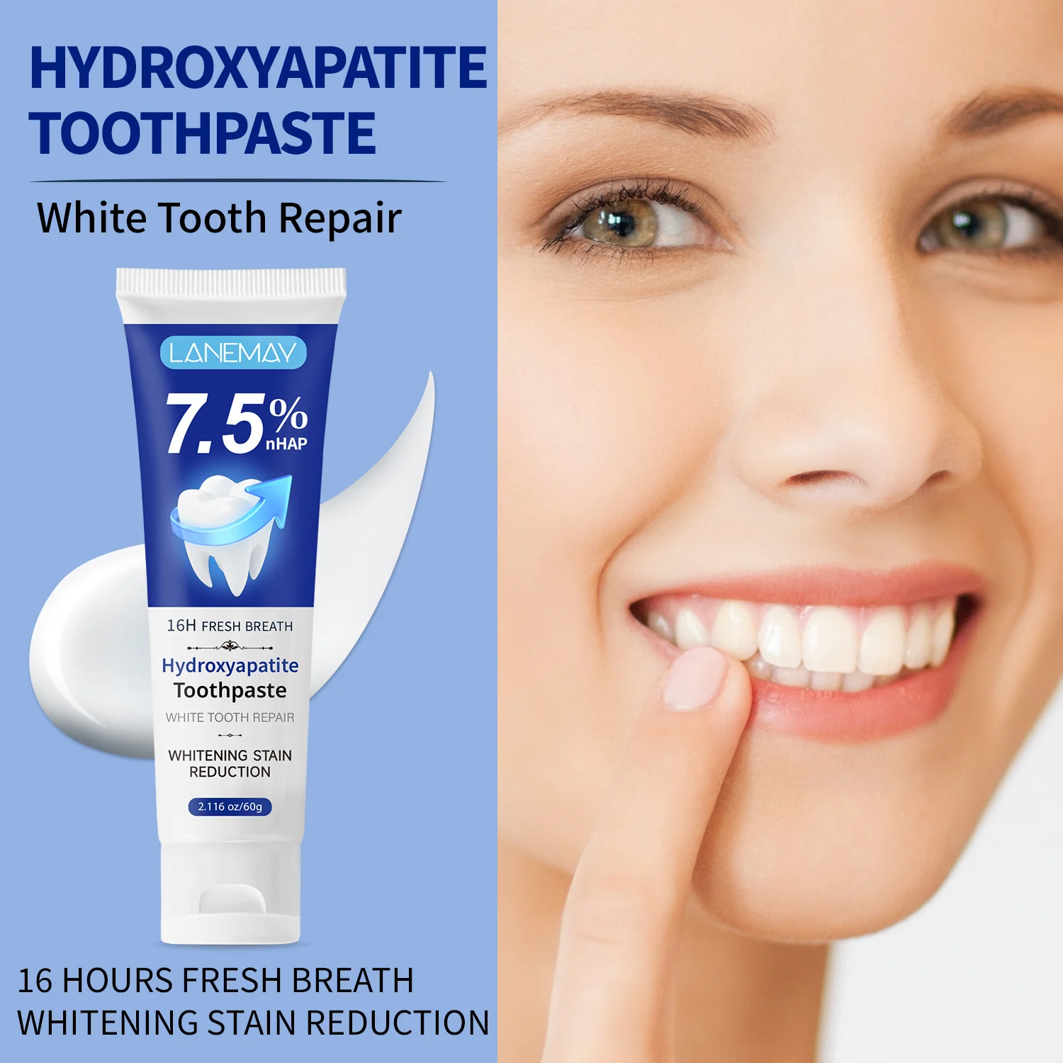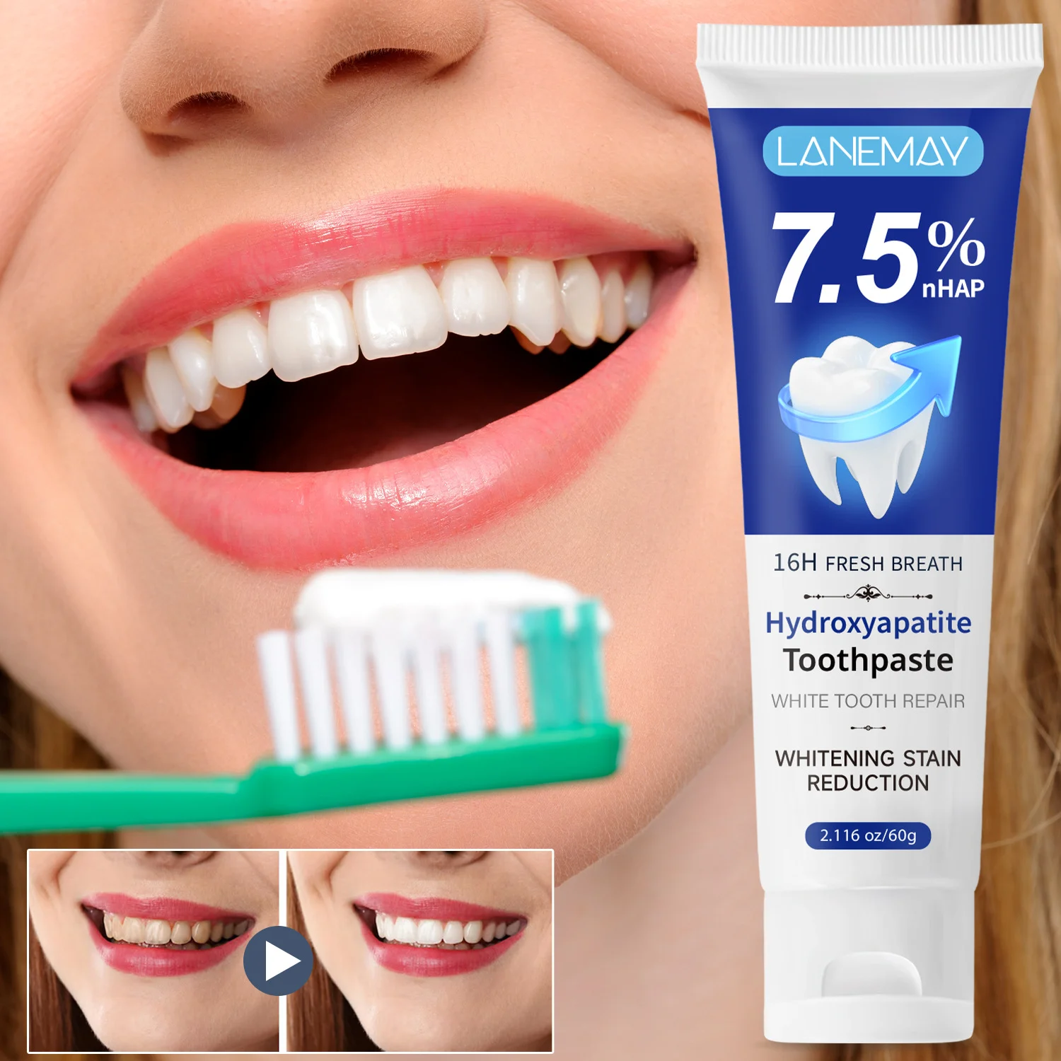 Experience the next generation of oral care with LANEMAY Hydroxyapatite Toothpaste. Formulated with a potent 7.5% nHAP (Nano-Hydroxyapatite), this toothpaste doesn’t just clean—it actively repairs and remineralizes your enamel. Say goodbye to surface stains and hello to a naturally whiter, stronger smile with the added benefit of 16-hour long-lasting fresh breath.