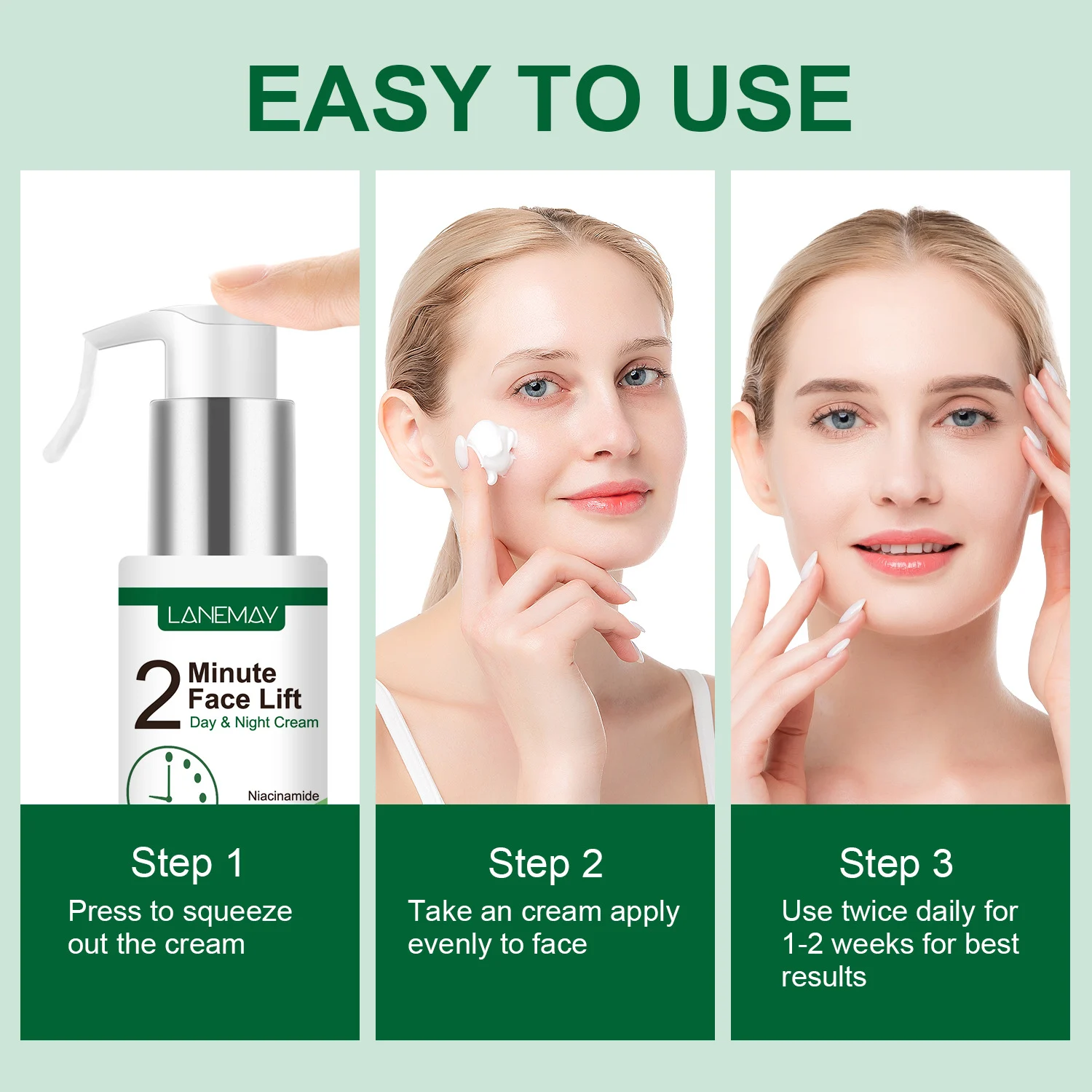 Experience the power of a targeted facial solution designed to deliver visible results. The LANEMAY Instant Face Lift Cream is a comprehensive Day & Night formula that combines potent active ingredients to firm, smooth, and hydrate your skin. Engineered for efficiency, this cream promotes a “2 Minute Face Lift” effect, helping to improve skin elasticity and texture for a youthful, radiant appearance.