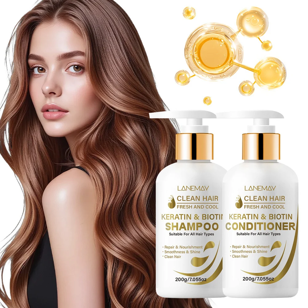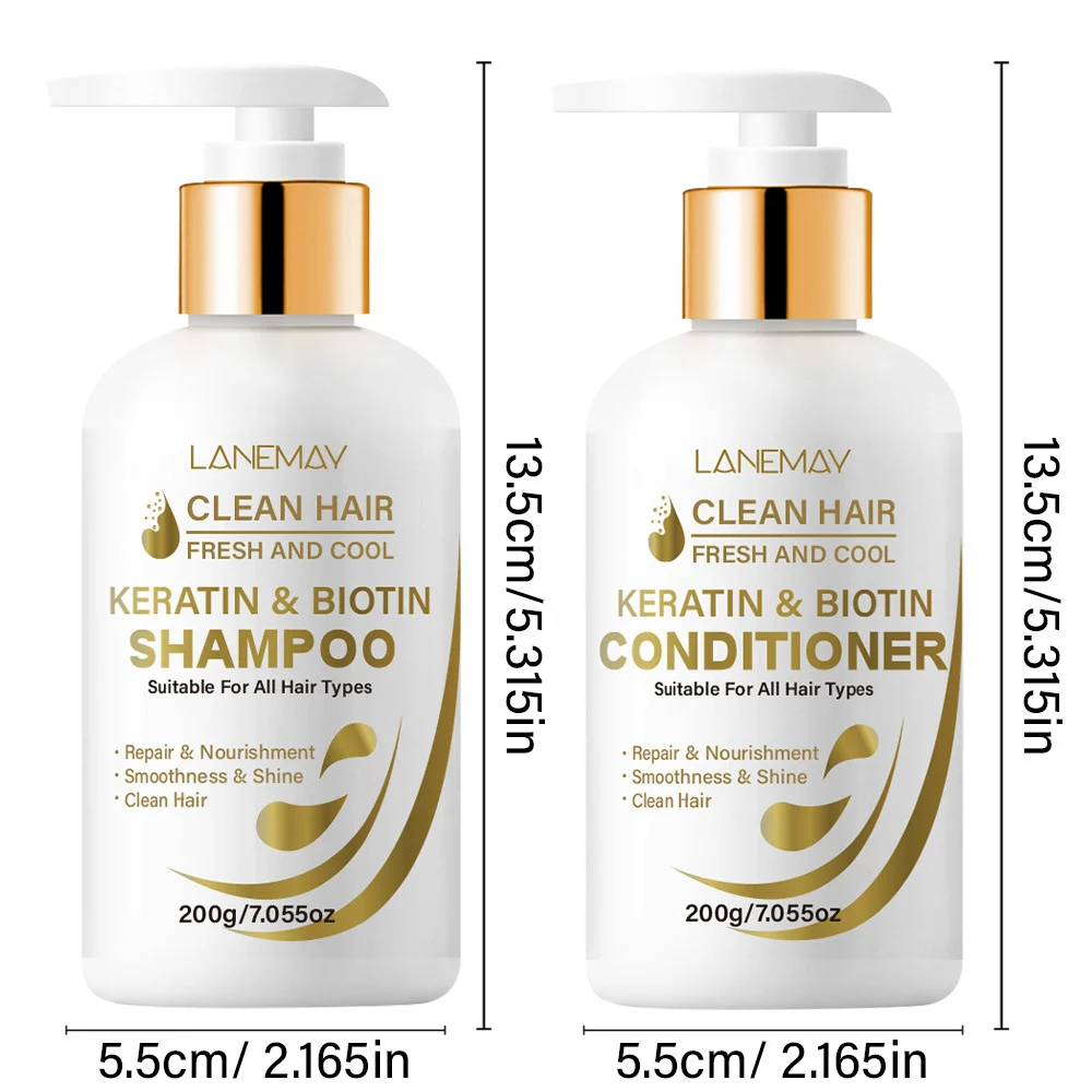 Transform your hair care routine with the LANEMAY Keratin & Biotin Shampoo and Conditioner Set. Designed to deliver a salon-quality experience at home, this duo works synergistically to clean, repair, and nourish your hair from root to tip. Whether you are dealing with dry, damaged strands or simply want to maintain healthy, shiny hair, this formula provides a fresh and cool sensation while locking in moisture for 24 hours. It is the ultimate solution for achieving smooth, fluffy, and revitalized hair.