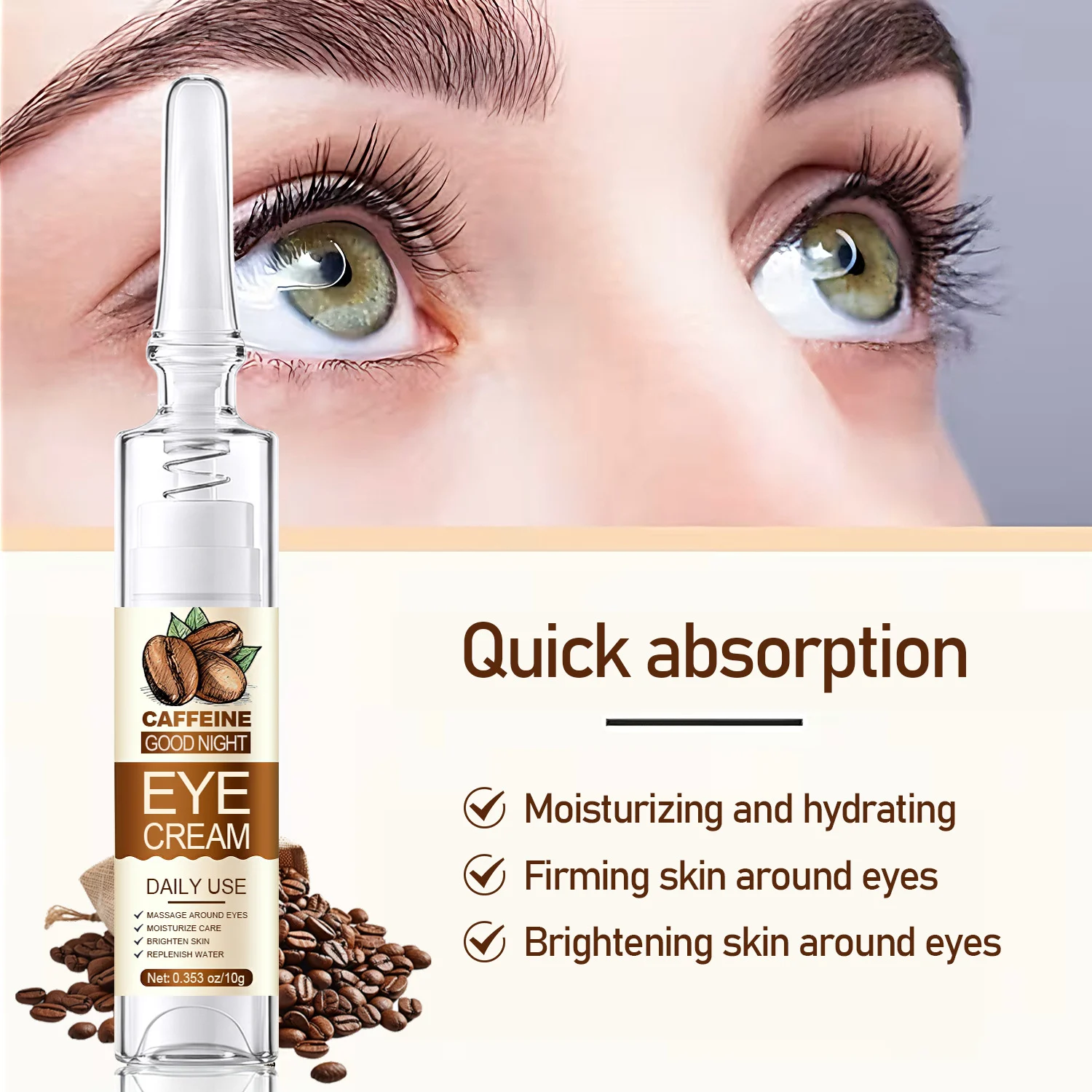 - Targeted Repair: specifically formulated to firm the delicate skin around the eyes and brighten skin tone.