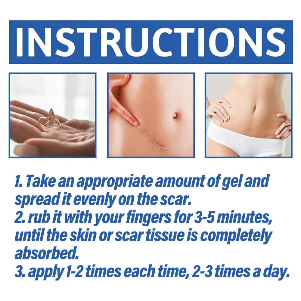 - Massage: Rub it gently with your fingers for 3-5 minutes until the skin or scar tissue has completely absorbed the product.