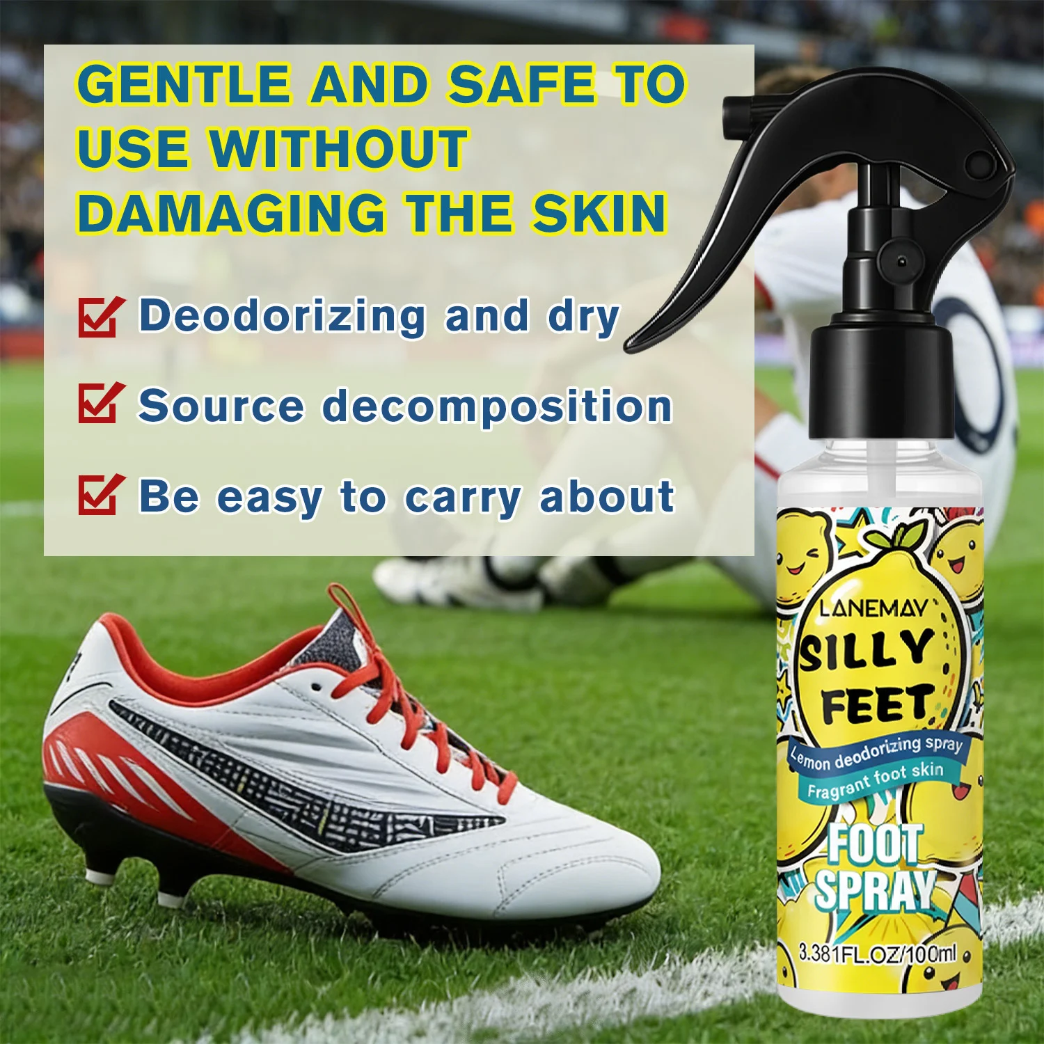 Step out with confidence and say goodbye to embarrassing foot odors with LANEMAY Silly Feet Foot Spray. Designed for active individuals and anyone seeking all-day freshness, this refreshing mist targets the source of odors instantly. Whether you have been at the gym, at work, or on the go, a quick spritz provides a fast, clean smell that revitalizes tired feet. Its compact 100ml size makes it easy to carry in your gym bag or purse for freshness whenever you need it.