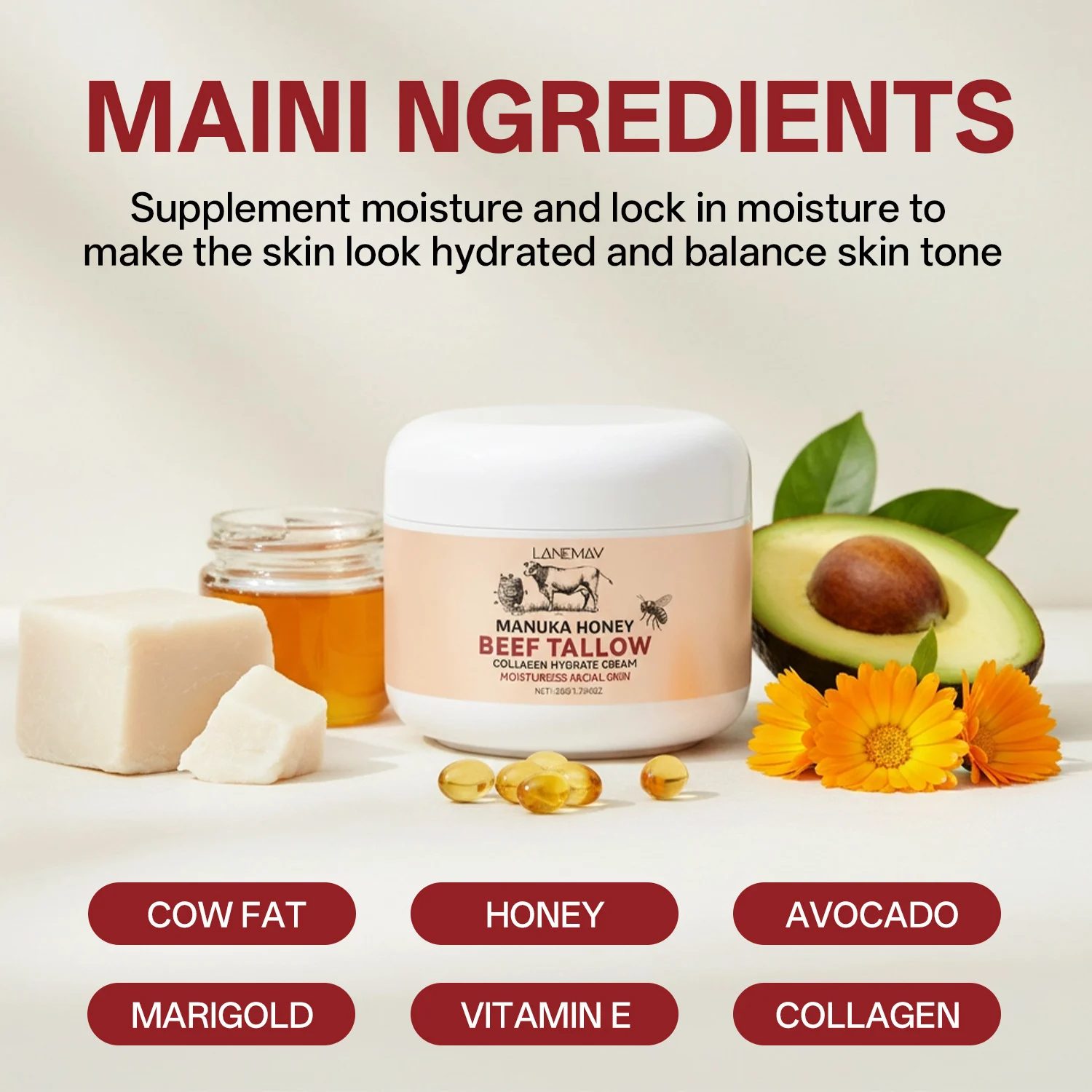 Experience the ultimate skin rejuvenation with LANEMAY Manuka Honey Beef Tallow Cream. This unique formula combines the traditional nourishing power of beef tallow with the healing properties of premium Manuka honey. Designed to deeply hydrate and restore skin elasticity, it leaves your complexion looking firm, radiant, and youthful without any greasy residue.