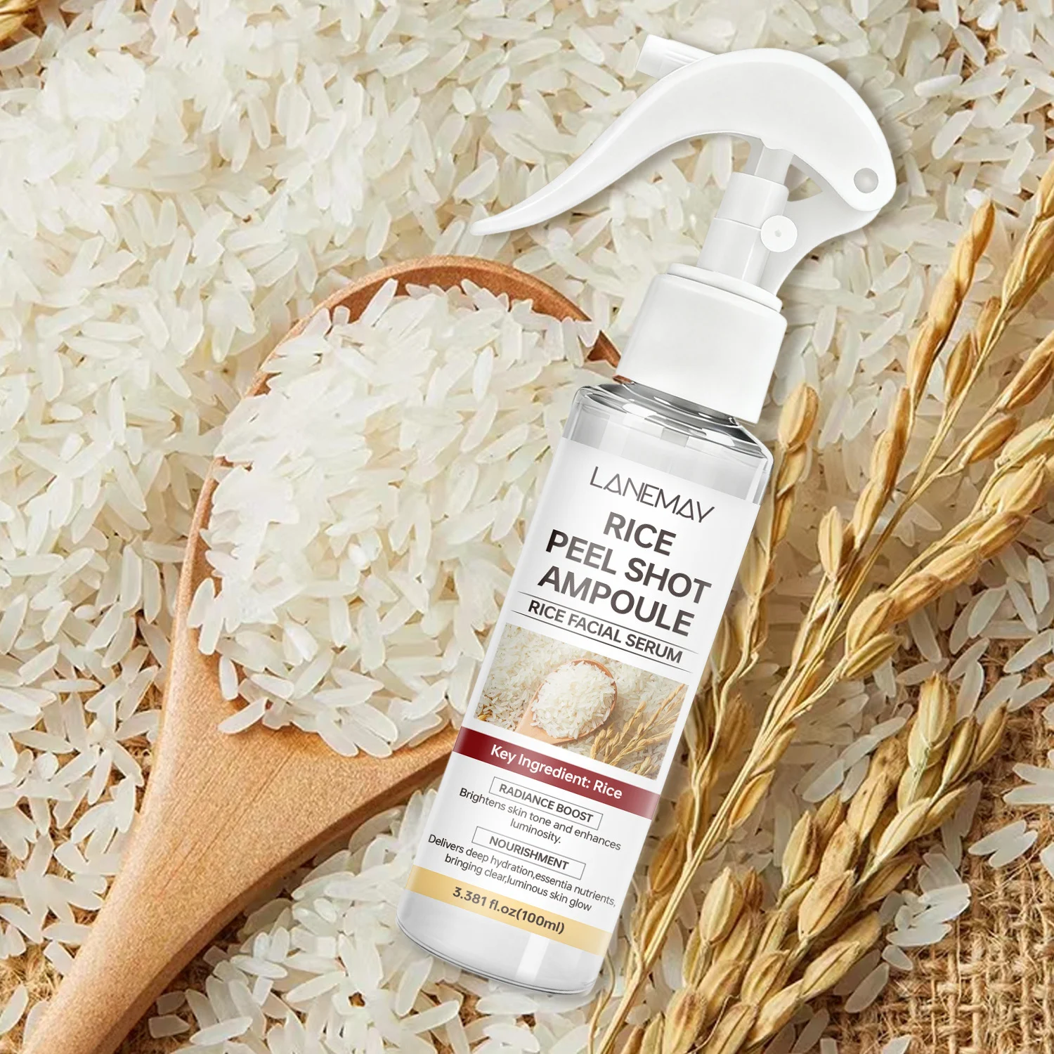 Unlock the secret to luminous, glass-like skin with the LANEMAY Rice Peel Shot Ampoule. This potent facial serum harnesses the traditional beautifying power of Rice to deliver a visible radiance boost. Designed to brighten uneven skin tone while providing deep, essential nourishment, this 100ml ampoule is your daily step towards a clear, glowing complexion.