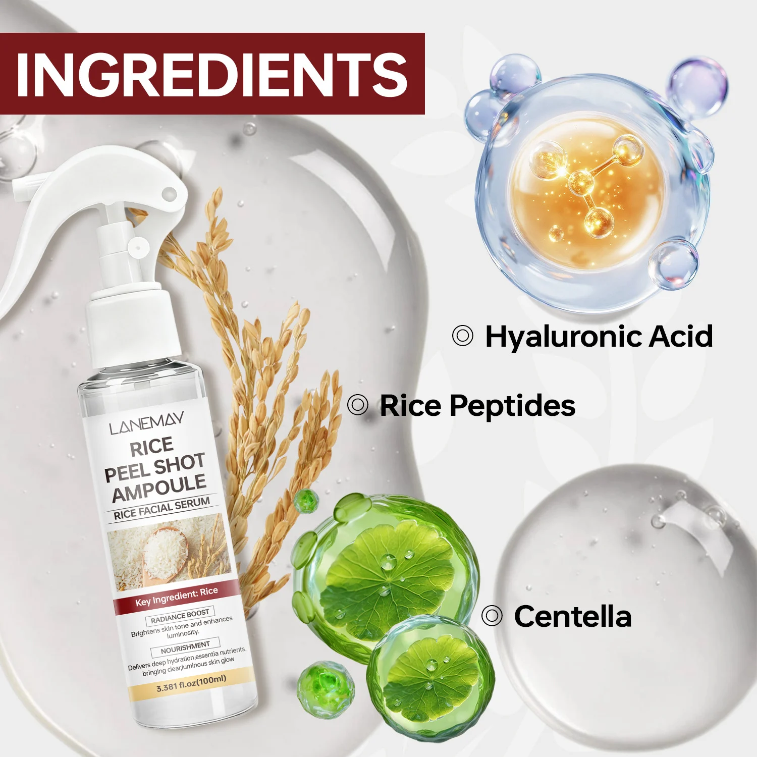 - Rice Peptides: The star ingredient, known for its ability to smooth skin texture and promote brightening.