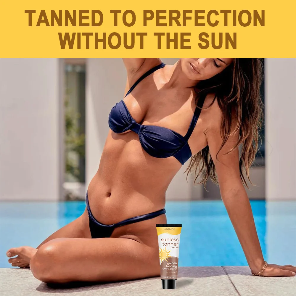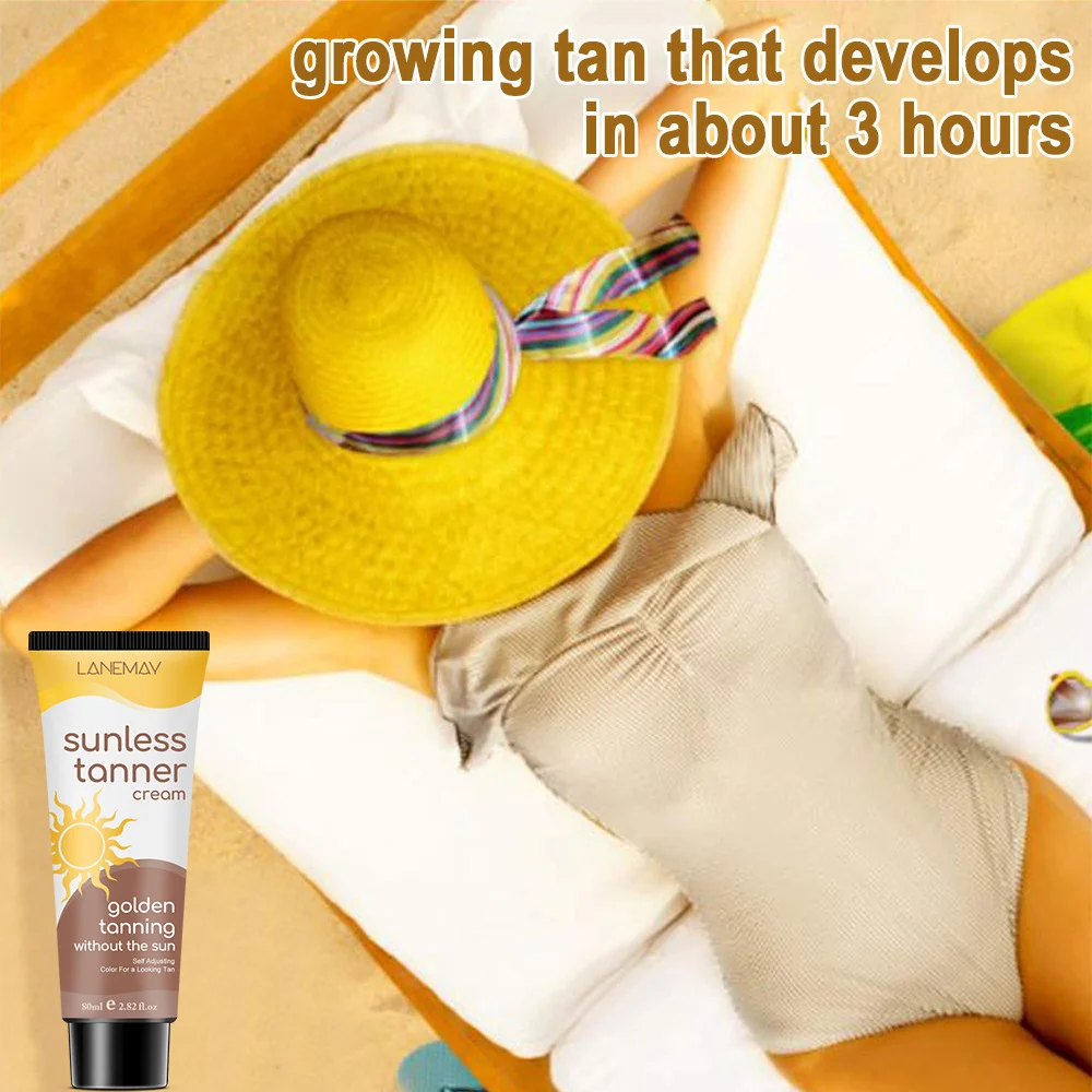 Achieve a flawless, sun-kissed glow all year round without the harmful effects of UV rays. This Lanemay Sunless Tanner Cream features a self-adjusting color formula that develops into a natural-looking, golden tan in just about 3 hours. Its non-sticky, quick-drying formula ensures a streak-free finish that leaves your skin looking professionally bronzed and feeling incredibly soft.