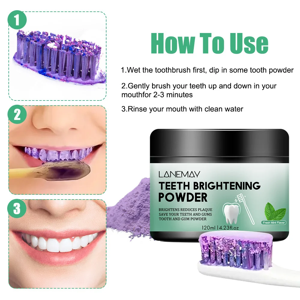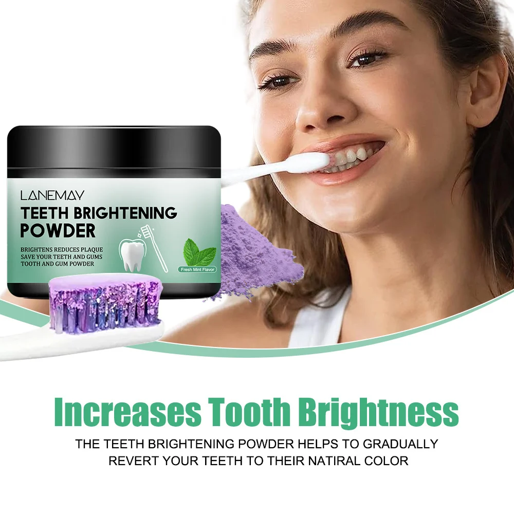 Unlock a brighter, more confident smile with Lanemay Teeth Brightening Powder. This advanced purple tooth powder uses color-correcting technology to neutralize yellow tones while providing a deep clean that regular toothpaste often misses. Infused with refreshing mint and protective xylitol, it’s your daily essential for a radiant smile and long-lasting fresh breath.