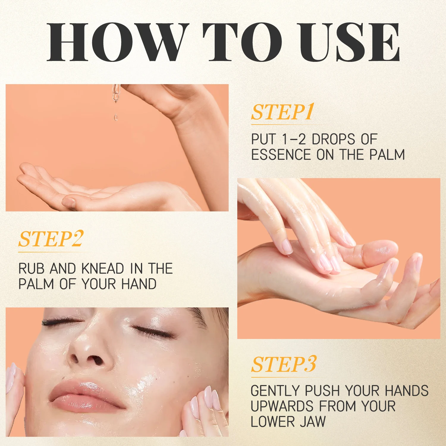 - Dispense 1-2 drops of the essence into the palm of your hand.