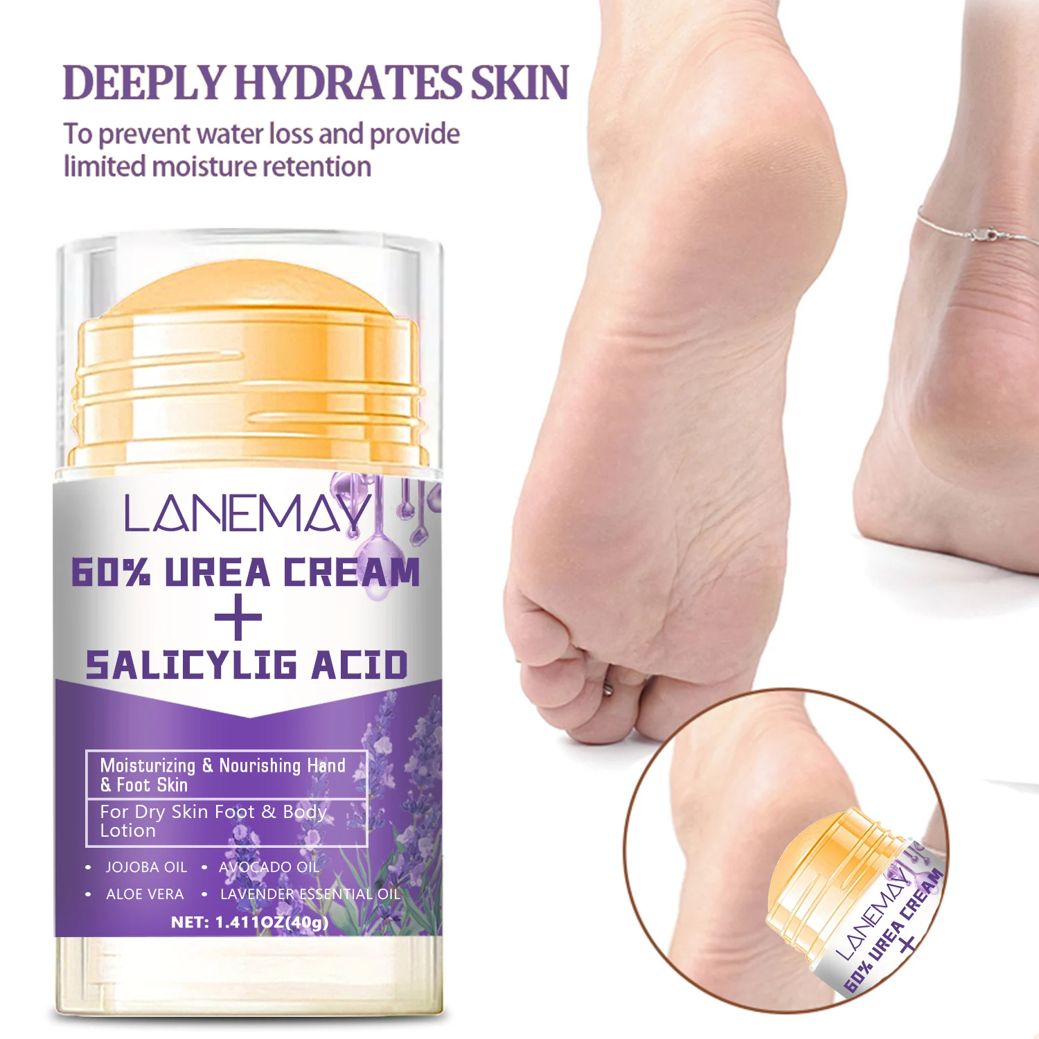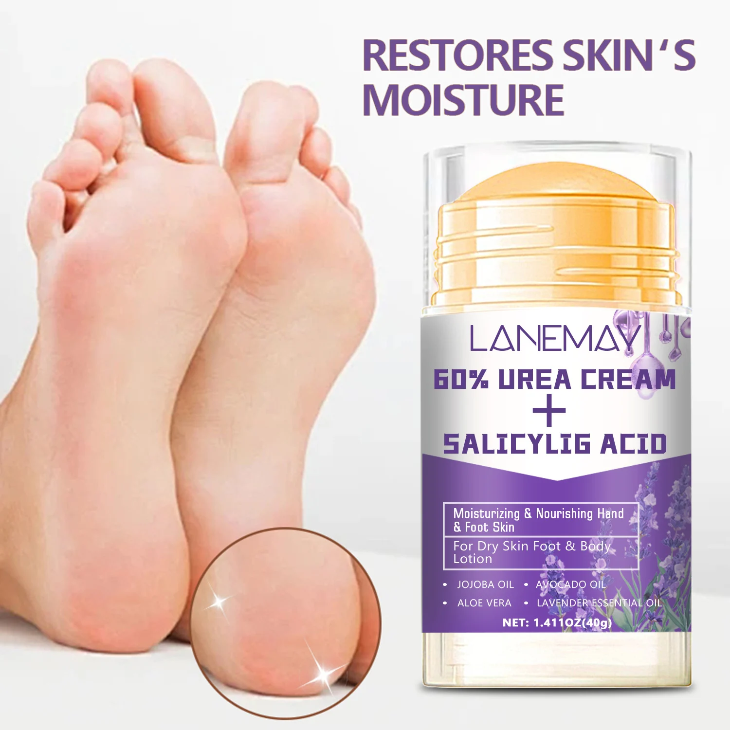 - 60% Urea: A powerful humectant that softens calluses and intensely hydrates dry skin.