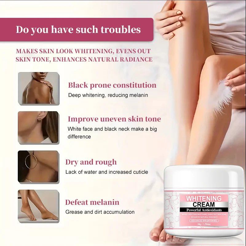Experience a visible transformation with LANEMAY Whitening Cream. Specifically formulated to target hyperpigmentation and uneven skin tone, this cream works deeply to reduce melanin and restore your skin’s natural radiance. Whether it’s dark underarms, knees, or elbows, this advanced brightening formula provides a smooth, soft, and luminous finish.