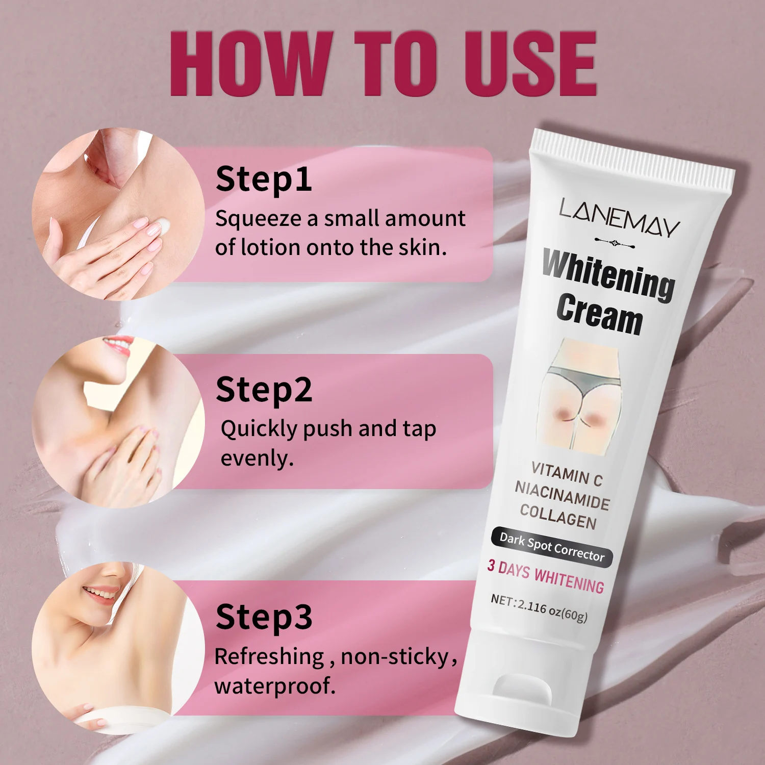 - Squeeze: Apply a small amount of the whitening cream onto the targeted skin area.